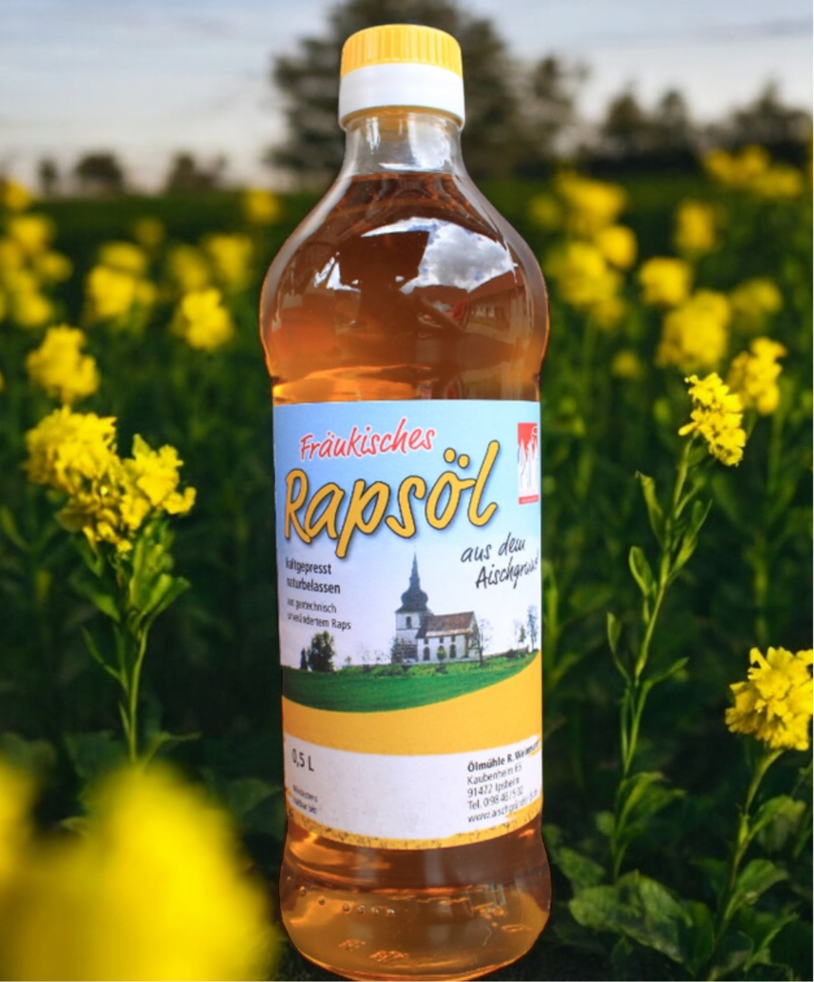 Fränkisches Rapsöl-kaltgepresst & naturbelassen-0,5 Liter Glasflasche Direkt aus der Ölmühle Weinmannshof