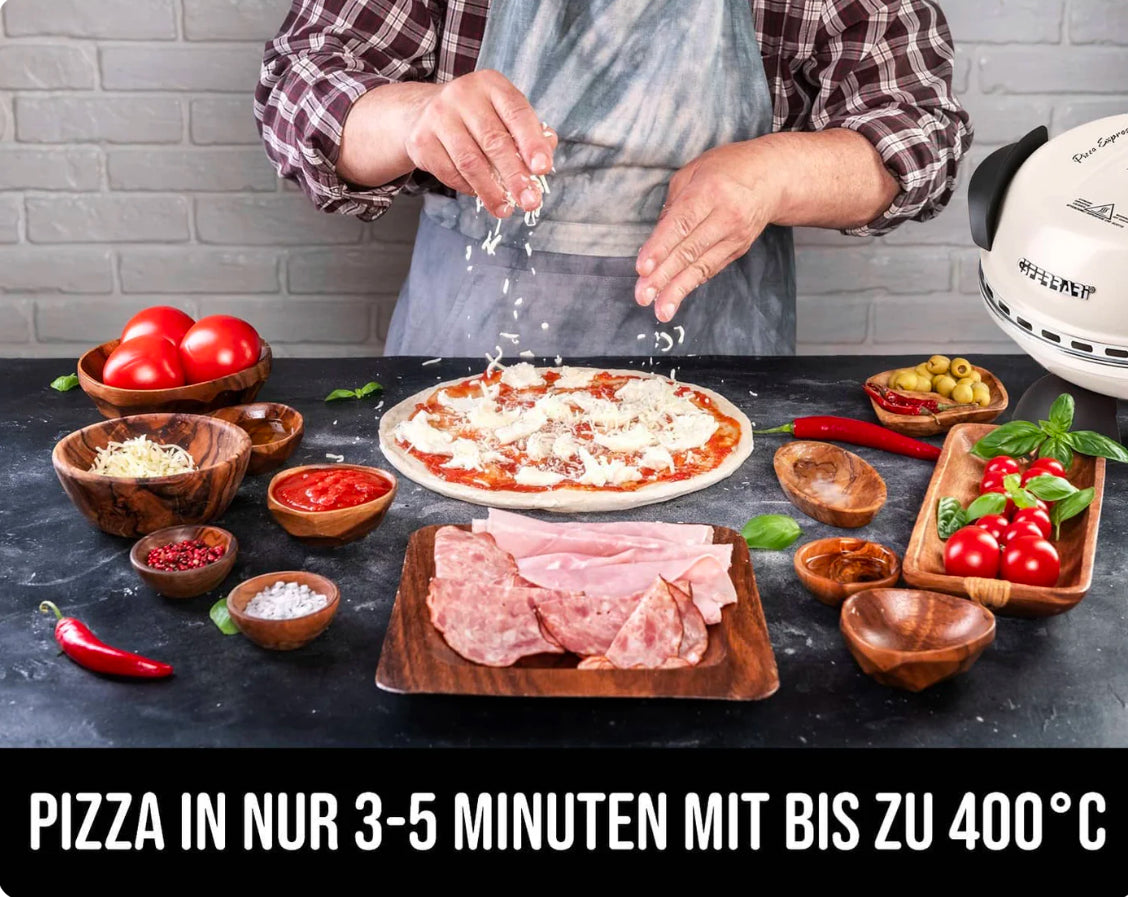 - Schnell: In nur ca. 5 Minuten selbstgemachte Pizza