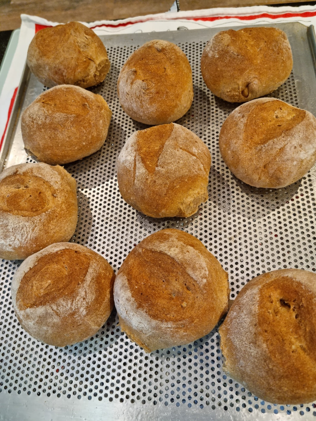 Unsere Mischung enthält hochwertiges Weizenmehl und Roggenmehl, die in unserer Mühle schonend vermahlen wurde. Für ein zusätzliches Geschmacksprofil sorgen Weizenmalz und Gerstenmalz die den Brötchen eine leichte Süße und eine schöne Farbe verleihen. Ergänzt wird das Ganze durch Malzmehle aus Gerste und Weizen sowie Weizengrieß, die den Brötchen eine wunderbare Kruste und eine angenehme Textur geben. Abgerundet wird die Mischung mit jodiertem Salz und aromatischem Roggenmalz, die zusammen für das typische Aroma sorgen, das diese Brötchen so besonders macht.