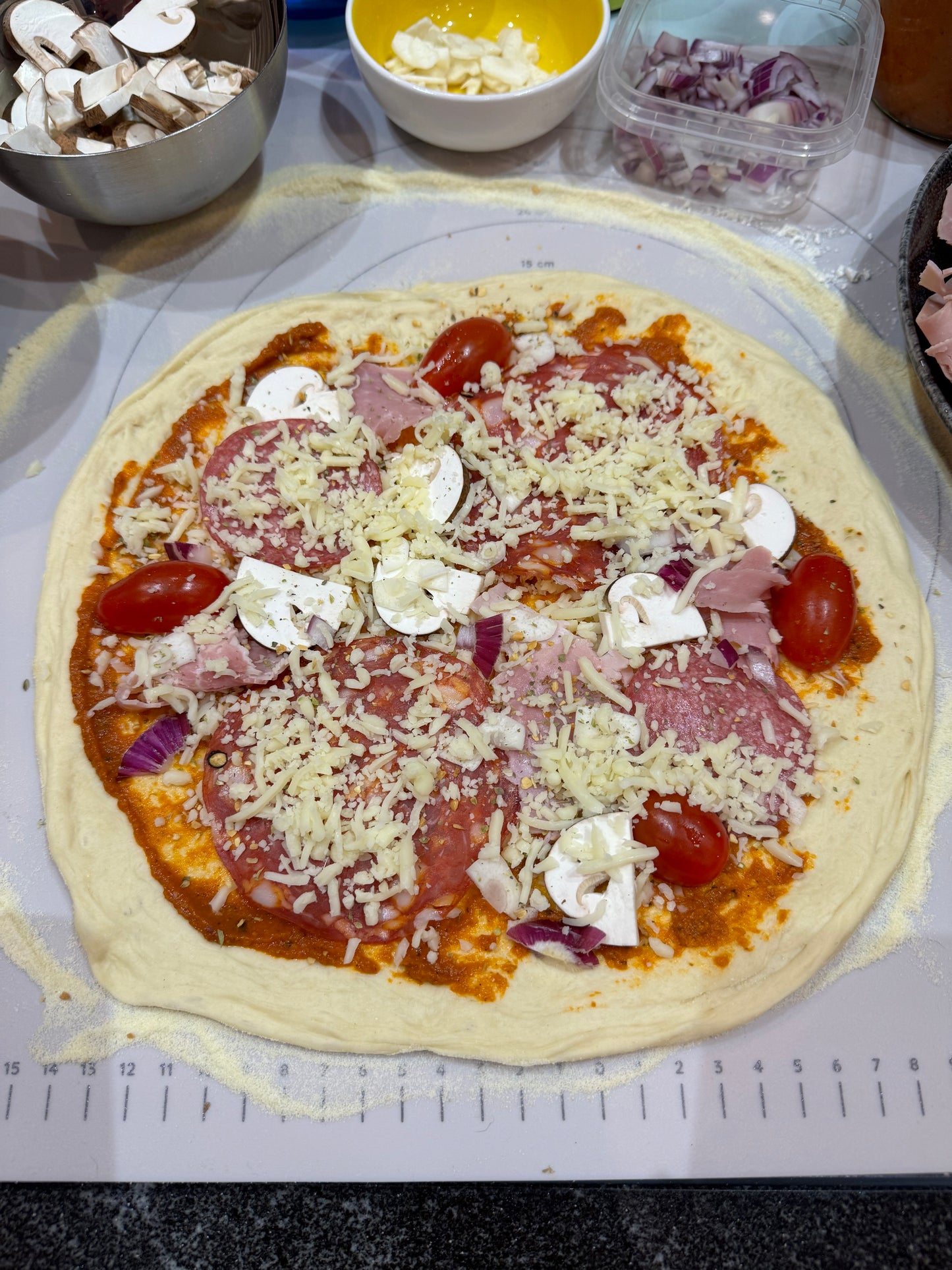Damit die Pizza so richtig schön locker und luftig wird, müssen die portionierten Teiglinge vor dem Ausbreiten und Belegen eine Zeit lang ruhen (je länger um so besser). Dieser Arbeitsschritt wird auch Stückgare genannt. So entspannt sich der Teig, lässt sich ganz einfach ausbreiten und es bildet sich beim Backen ein gleichmäßiger und krosser Rand. Natürlich brauchen die Teiglinge beim Ruhen ausreichend Platz und eine geschützte Atmosphäre, die vor Austrocknen der Oberfläche schützt. Eine Teigballenbox bietet genau diese Anforderung und sorgt für perfekte Bedingungen während der Gehzeit.