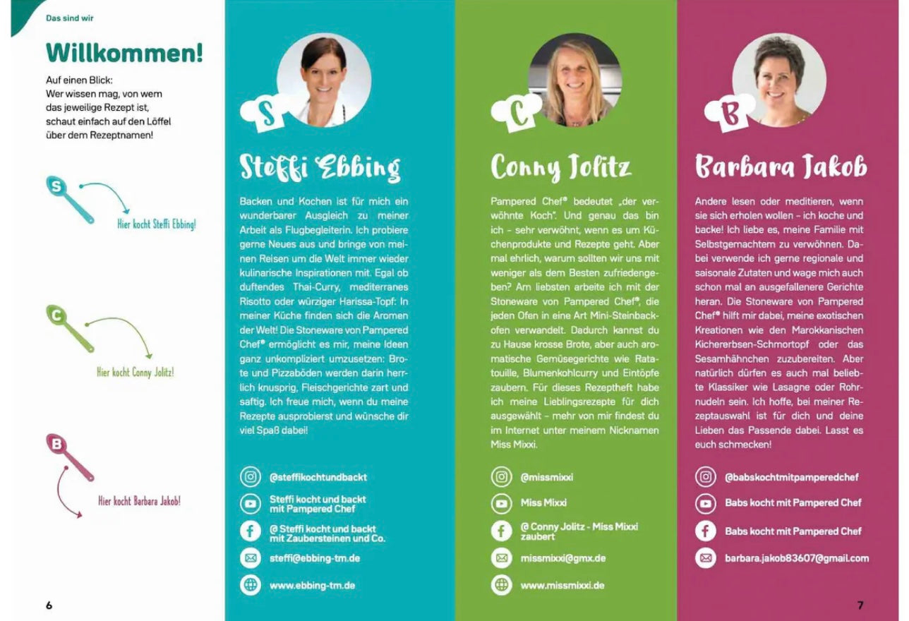 Insgesamt 34 kreative Rezept-Ideen haben die drei Küchenfeen zusammengetragen. Außerdem teilen sie mit ihren Leserinnen und Lesern jede Menge praktische Tipps und Tricks für den Umgang mit den beliebten Stoneware- Produkten von Pampered Chef®️