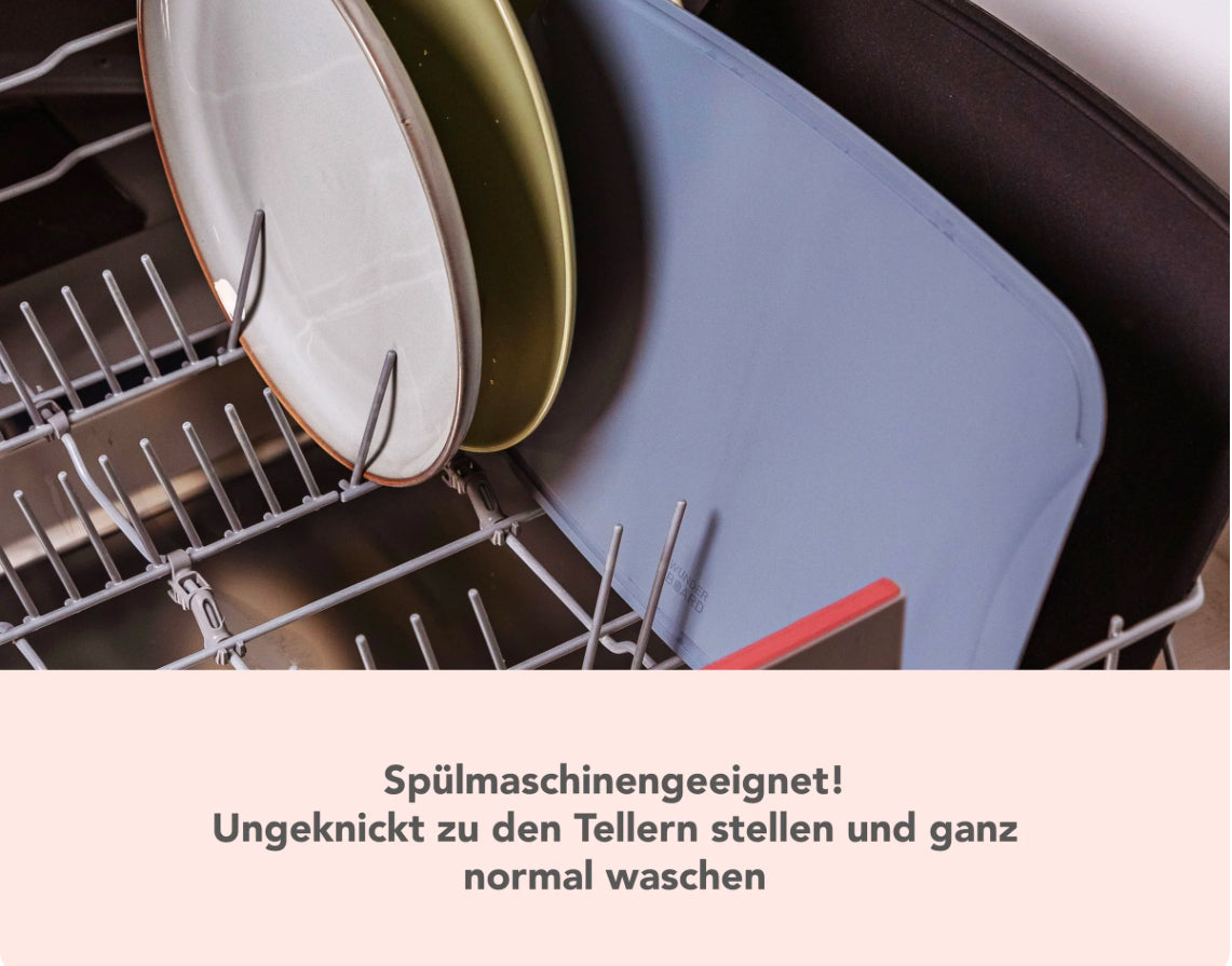Platziere das WunderBoard zur Reinigung in der Spülmaschine am besten in den hinteren Tellerfächern. Platziere keine heißen Töpfe oder Pfannen auf dem WunderBoard