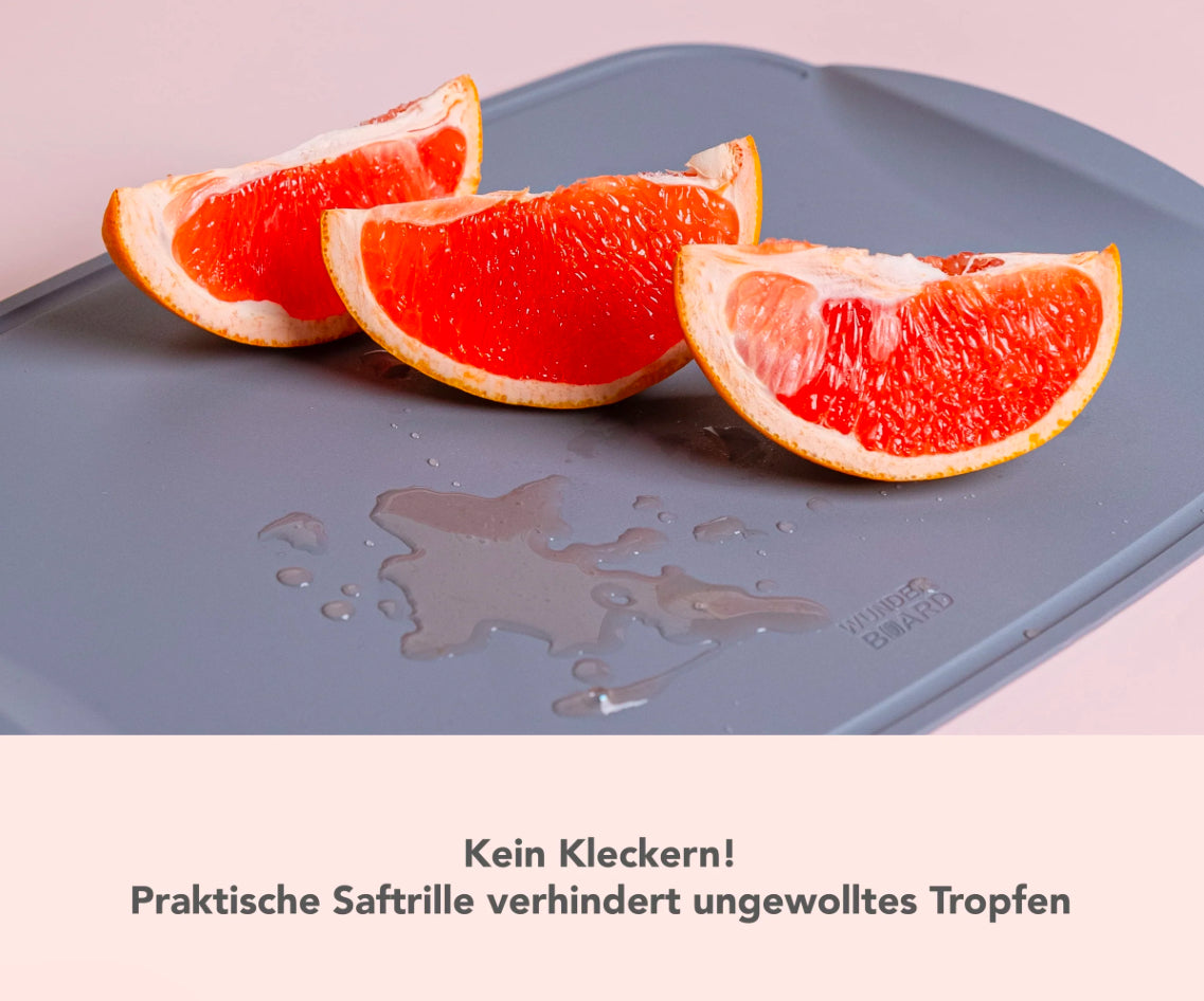 Beim Schneiden von frischem Obst oder saftigem Fleisch sorgt die integrierte Saftrille dafür, dass sich Flüssigkeiten sammeln können und deine Arbeitsfläche sauber bleibt. So kannst Du Dich voll und ganz auf das Kochen konzentrieren und Deine Küche bleibt ordentlich.