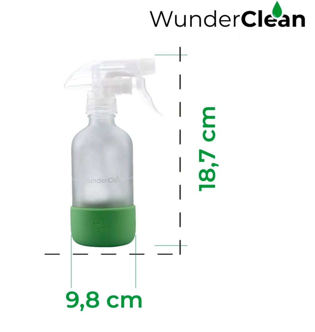 WunderClean Sprühflasche | 240 ml Glasflasche mit Silikon-Bruchschutz für WunderClean Reiniger