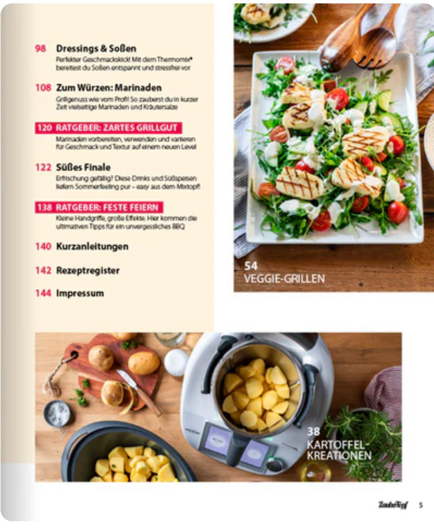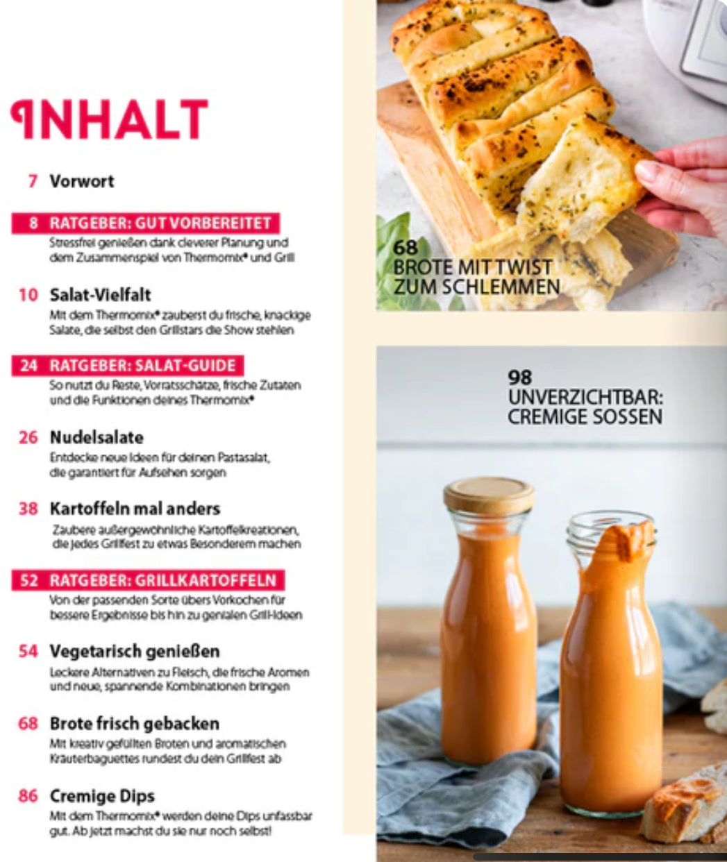 Ob Teig für knusprige Brote, perfekt abgestimmte Marinaden oder selbst gemachte Kräuterbutter – mit dem Zaubertopf gelingen vielseitige Beilagen mühelos. Leicht verständliche Anleitungen und wertvolle Tipps zeigen, wie der Thermomix® optimal genutzt wird. So wird der Grillabend zum echten Highlight – weniger Aufwand und mehr Genuss!